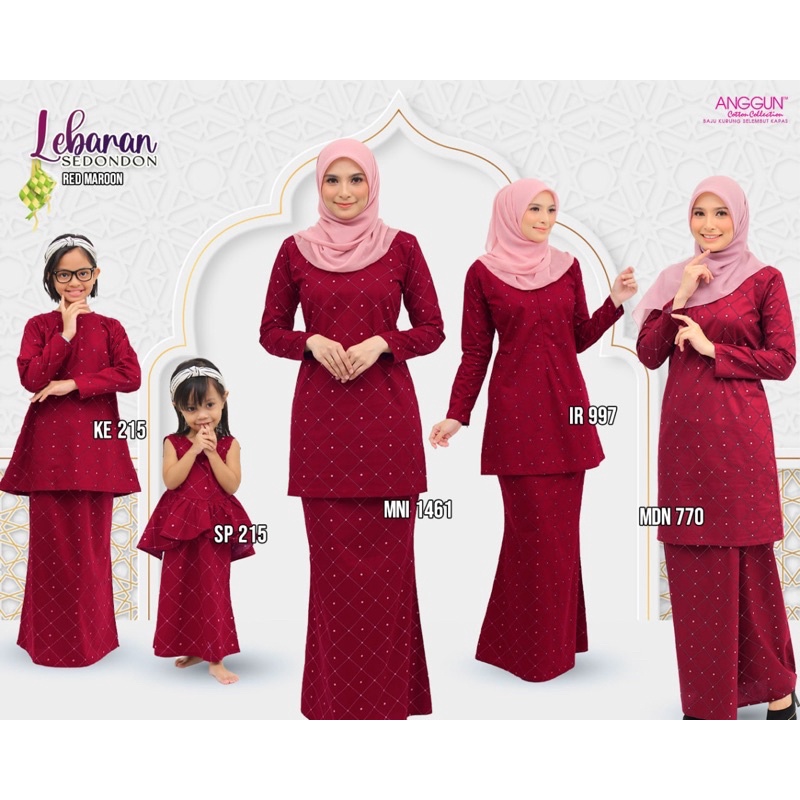 Set raya 2022 set family warna maroon baju kurung moden miera baju raya .